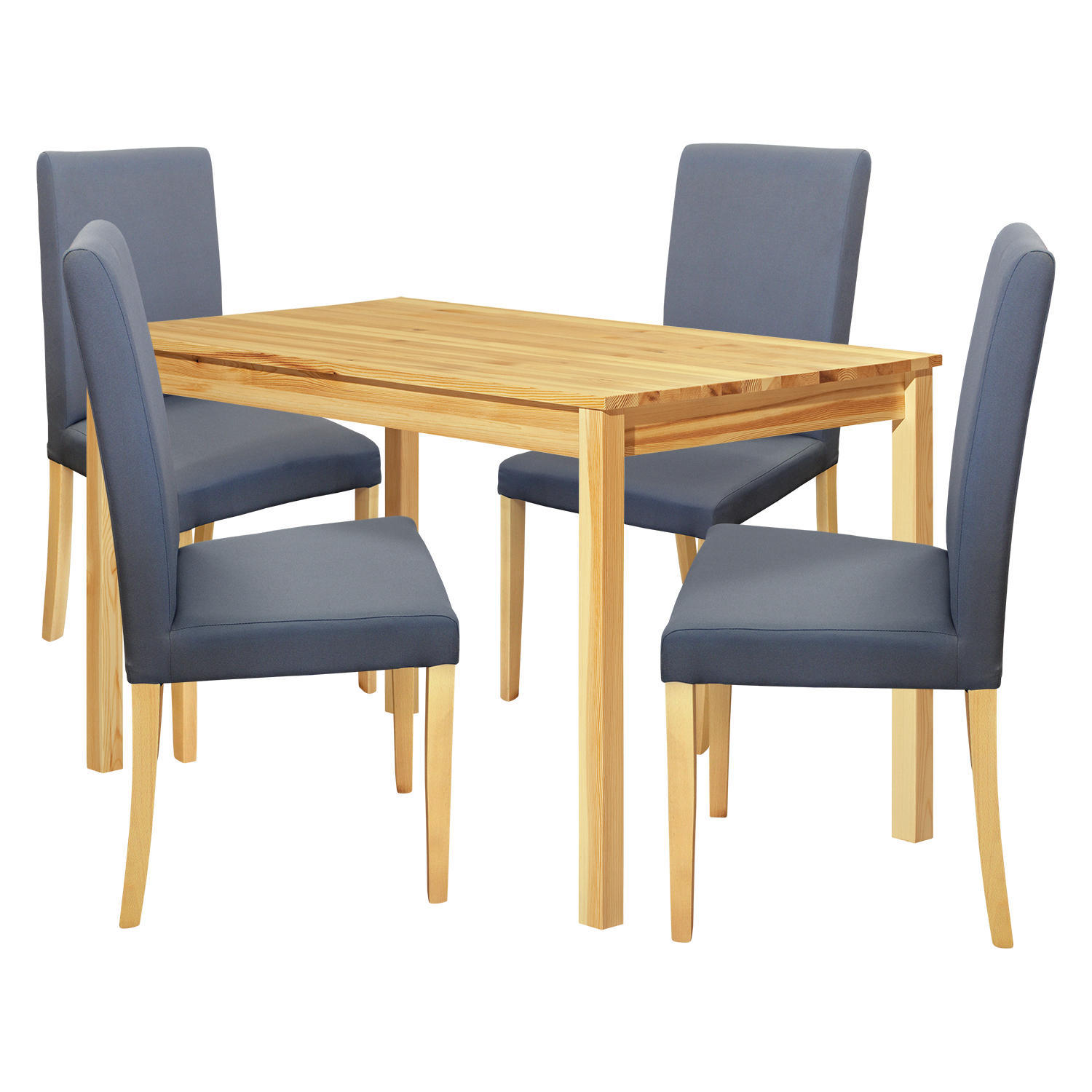 jedálenský stôl 8848 a 4 jedálenské stoličky PRIMA 3038 stôl: materiál masív borovica, lakované prevedenie stolička: textilný poťah, farebné prevedenie sivá nohy materiál masív, lakované prevedenie výška sedu stoličky 47 cm rozmer stola (š/h/v): 118 × 75 × 73 cm rozmer stoličky (š/h/v): 45 × 55 × 90 cm