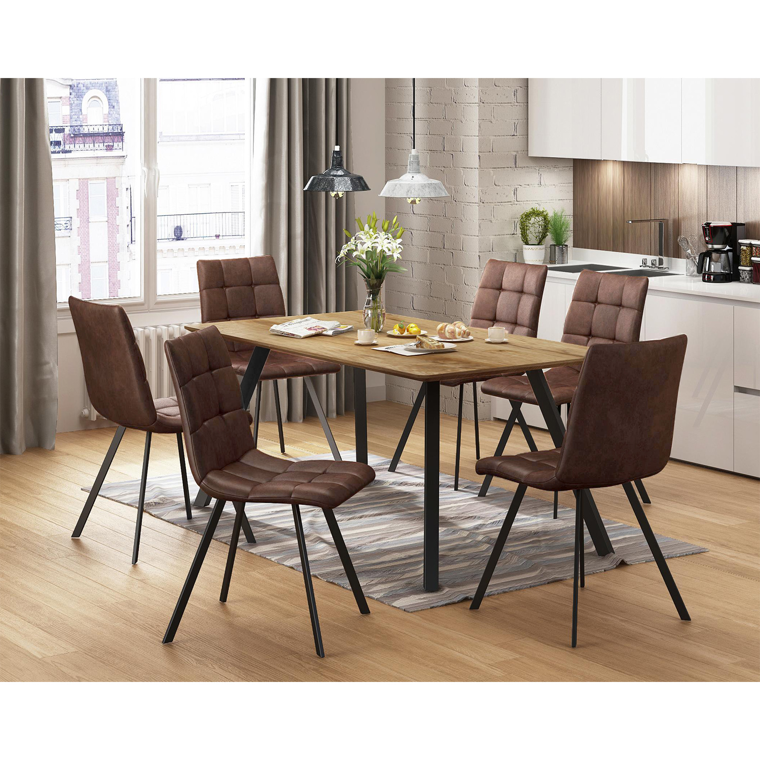 jedálenský stôl BERGEN 4090 a 6 jedálenských stoličiek BERGEN 4093 stôl: doska MDF, farebné prevedenie dub Wotan kovová konštrukcia, farebné prevedenie čierna stolička: poťah brúsená koža – imitácia mikrovlákno, farebné prevedenie hnedá kovová konštrukcia, farebné prevedenie čierna výška sedu stoličky 51 cm rozmer stola (š/h/v) 140 × 80 × 75 cm rozmer stoličky (š/h/v) 45 × 52 × 88 cm
