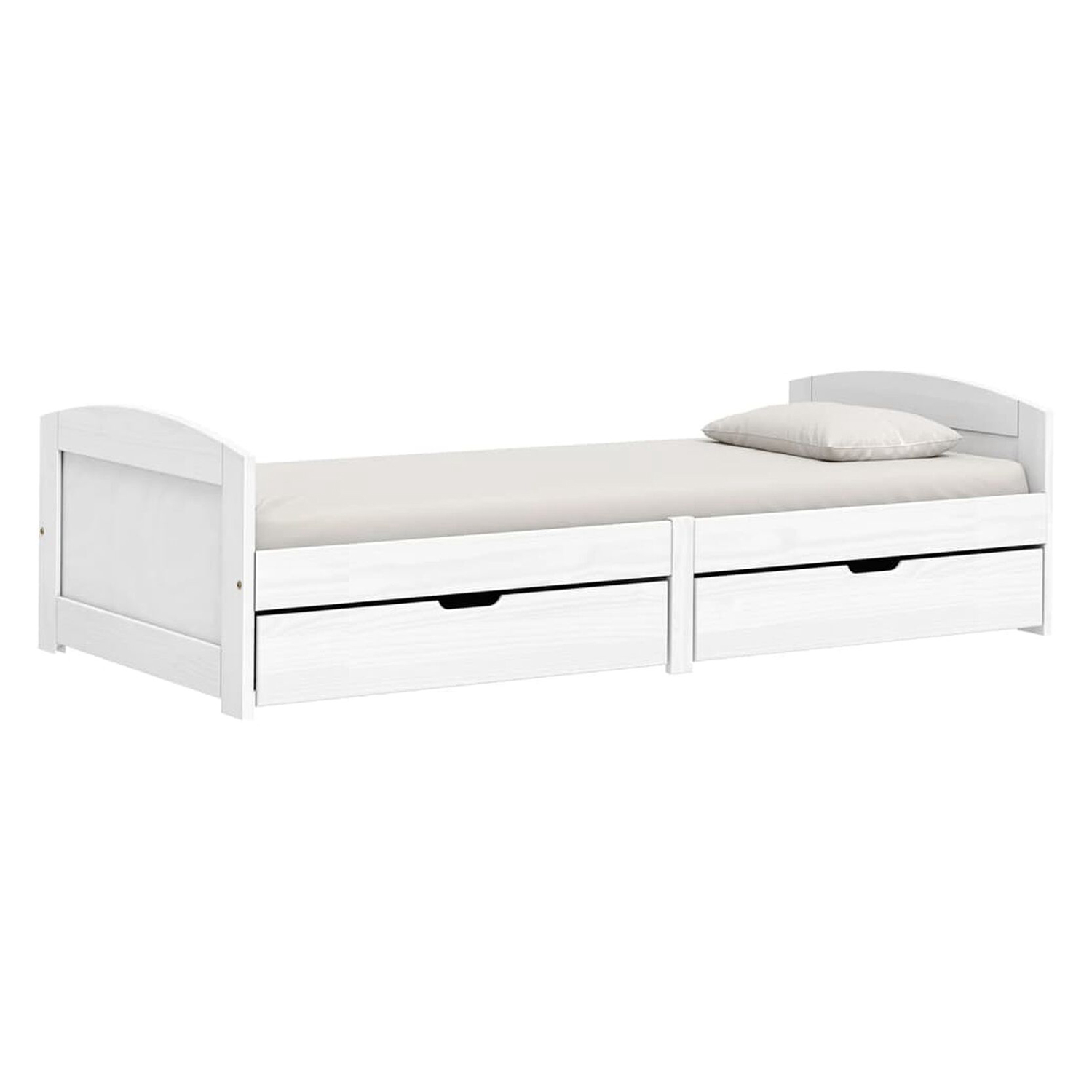 materiál masív borovica, farebné prevedenie biely lak 2 zásuvky pojazdné na kolieskach sú v cene cena vrátane roštu (drevený latkový) bez matraca odporúčaný rozmer matraca 90 × 200 cm