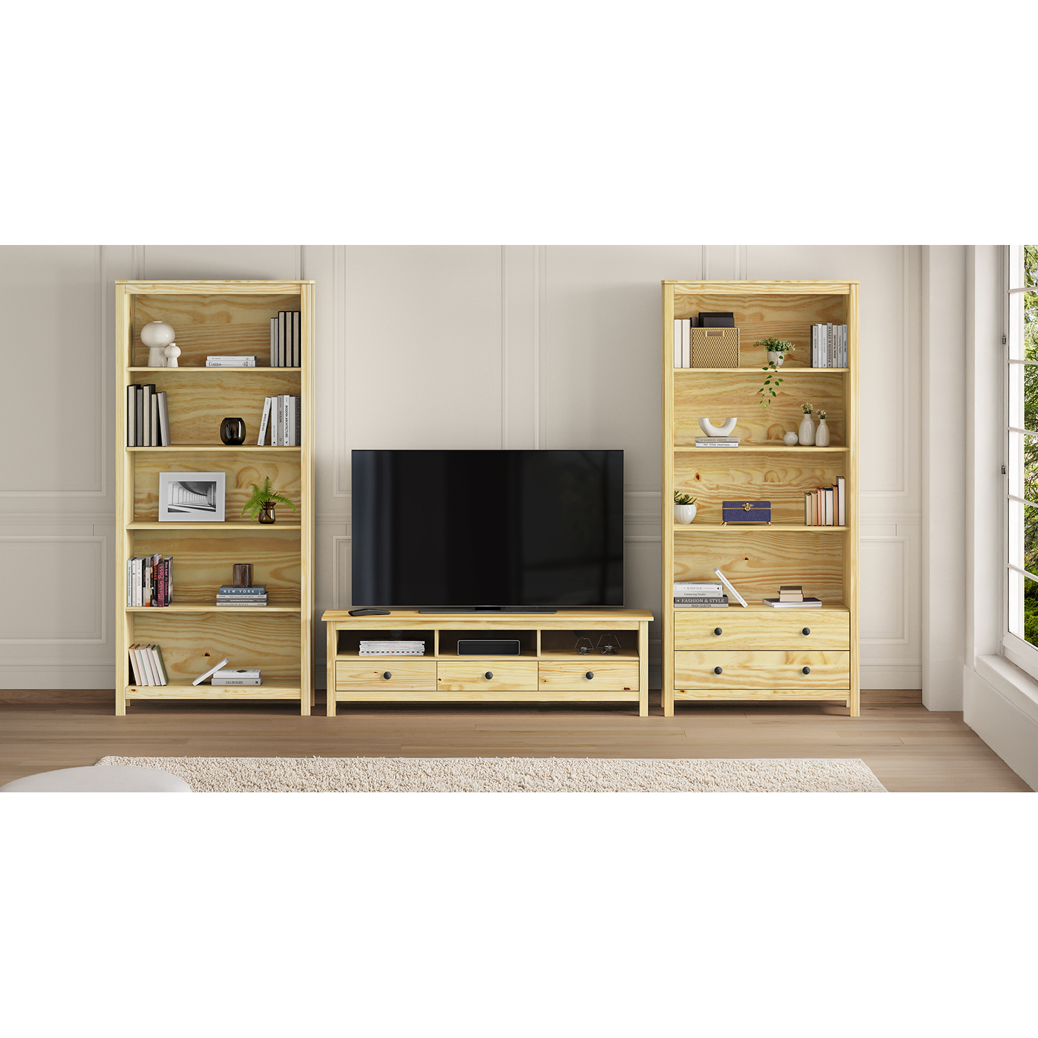 materiál masiv borovice, lakované provedení 2 otevřené police, 1 dvířka a 3 zásuvky s kovovými pojezdy výsuv není součástí dodávky ke s...