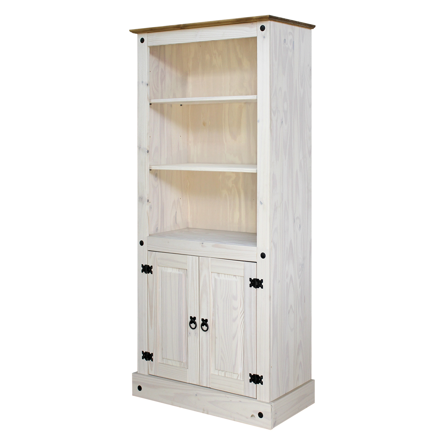 materiál masív borovica voskovaná v bielom odtieni horná doska masív borovica voskovaná v medovom odtieni presklená časť, 3 police, 1 plné dvierka, 2 ...