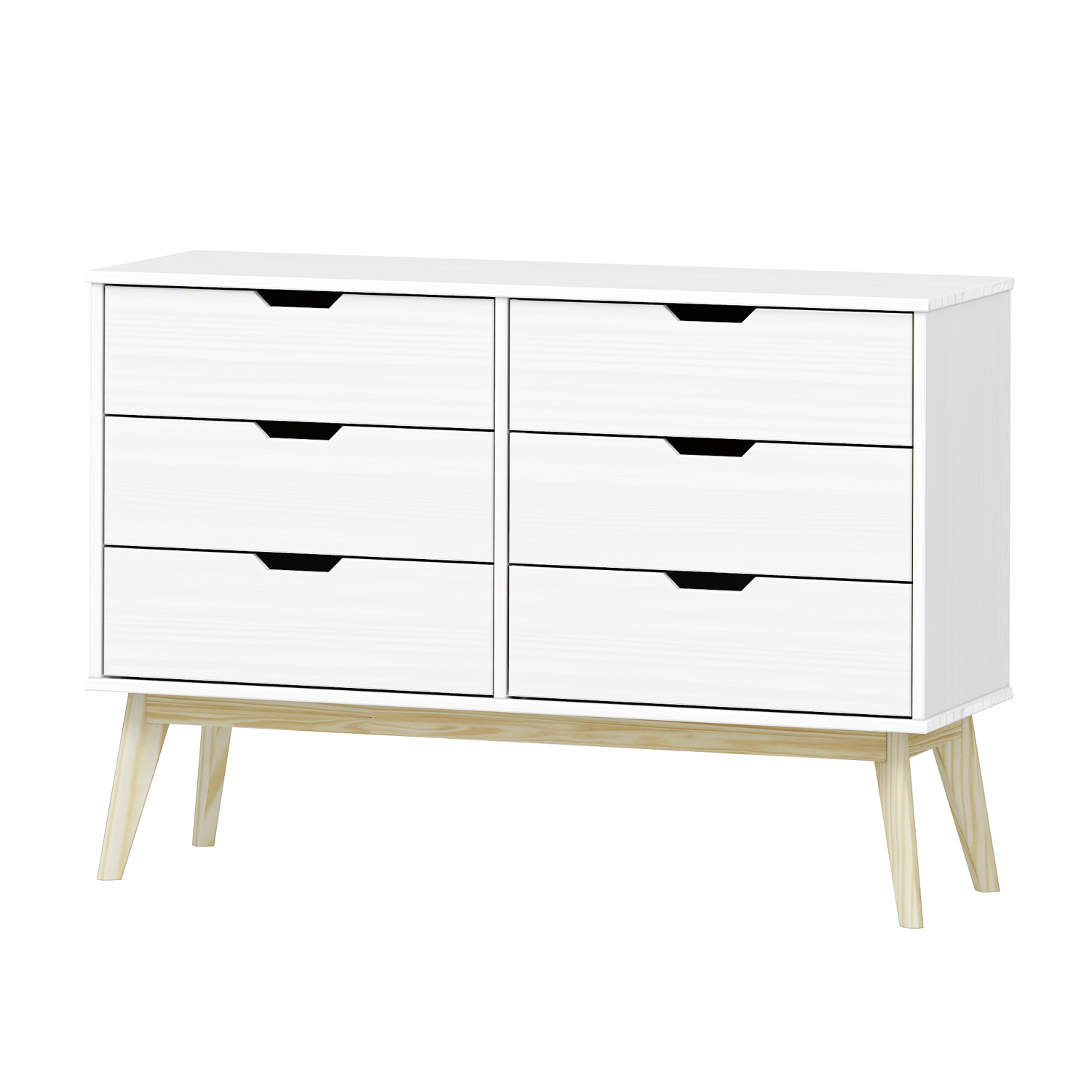 materiál masív borovica, lakované prevedenie 2 zásuvky s kovovými pojazdmi, 1 dvierka, 1 polica otvor na pretiahnutie káblov