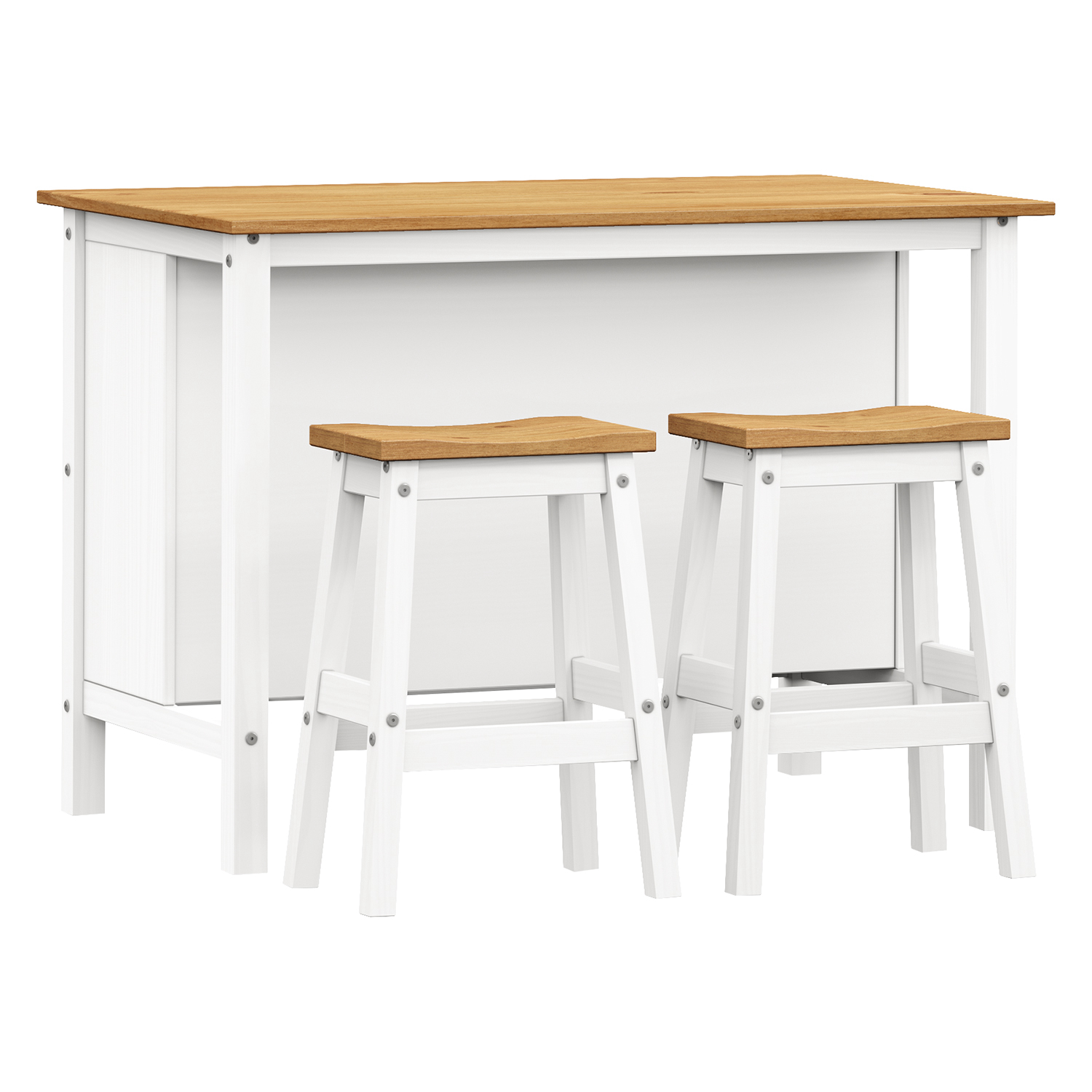 kuchynský ostrovček 11001W a 2 barové stoličky 13293B CORONA 2 materiál masív borovica voskovaná v bielom a medovom odtieni rozmer ostrovčeka (š/h/v) ...