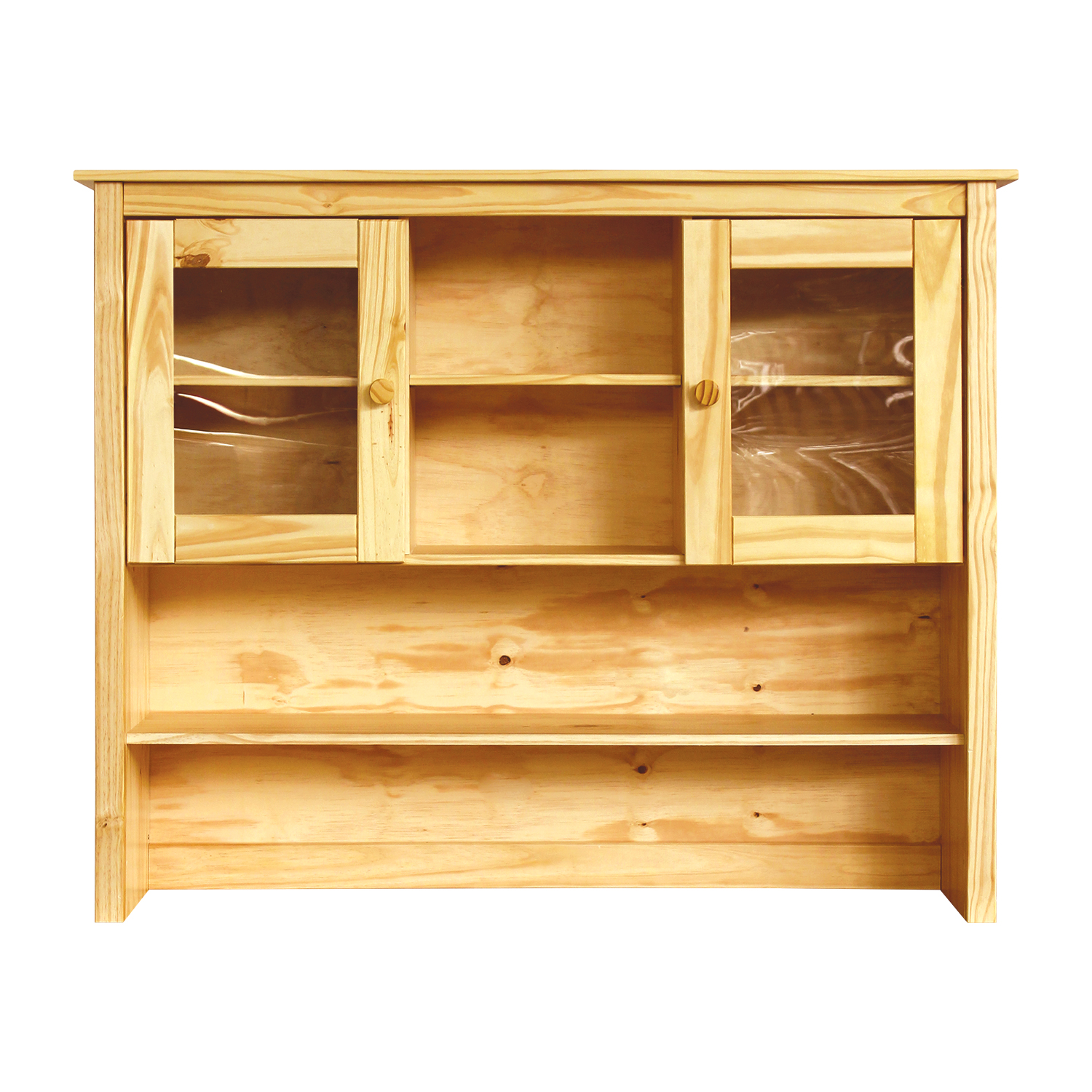 materiál masív borovica, lakované prevedenie 2 presklené dvere, 1 polica nadstavec príborníka 8095