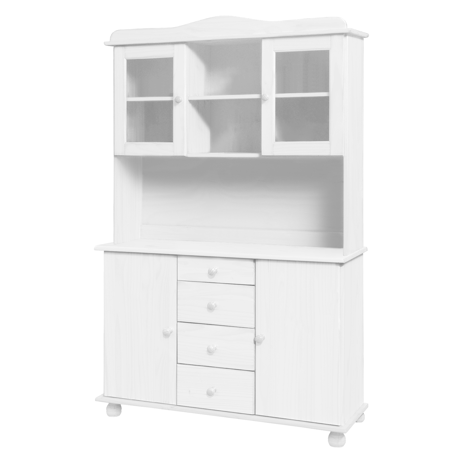 zostava príborníka 8045B a nadstavca 8046B materiál masív borovica, farebné prevedenie biely lak príborník: 4 zásuvky s kovovými pojazdmi, 2 skrinky s...