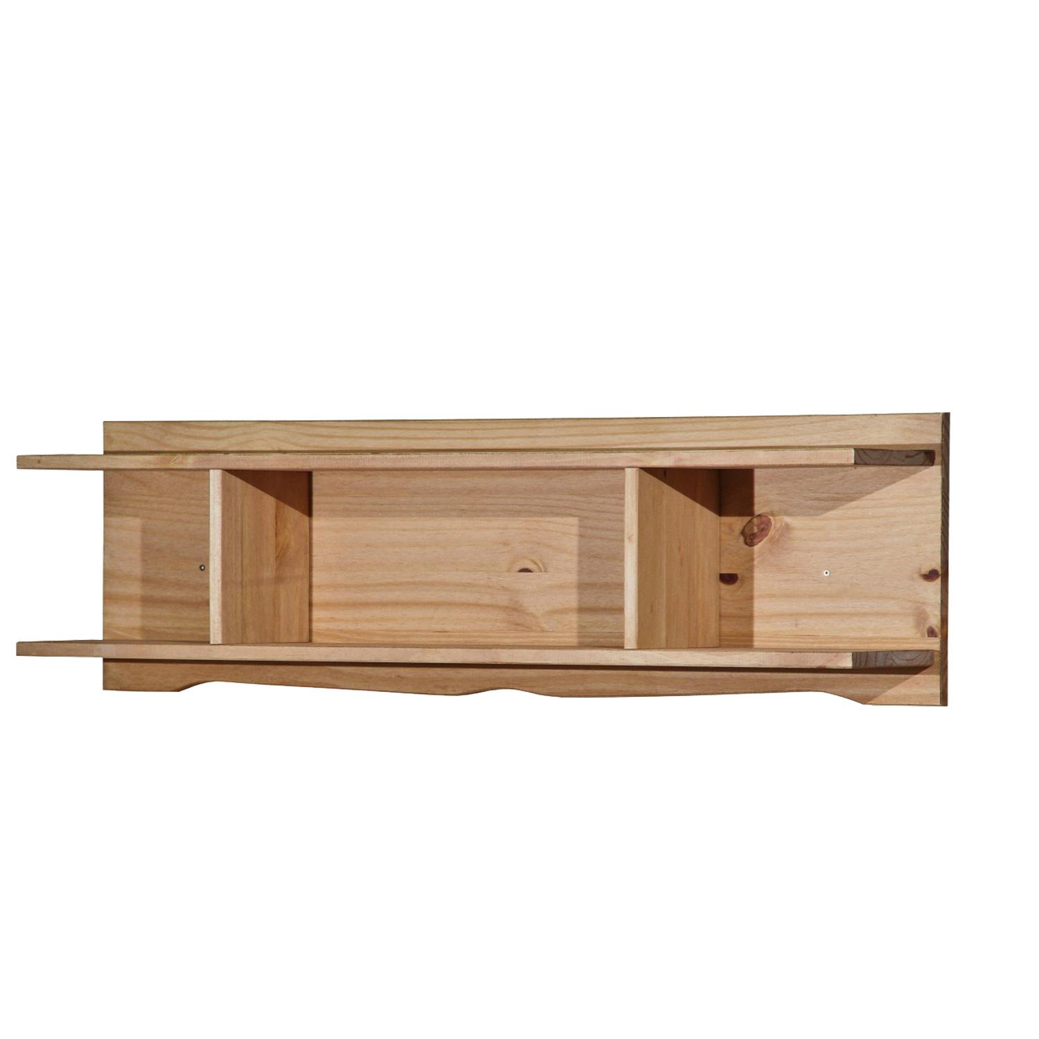 materiál masív borovica voskovaná v medovom odtieni priestor delený v pomere 2:1 širšia časť šatníková tyč a polica, užšia časť 3 police v spodnej čas...