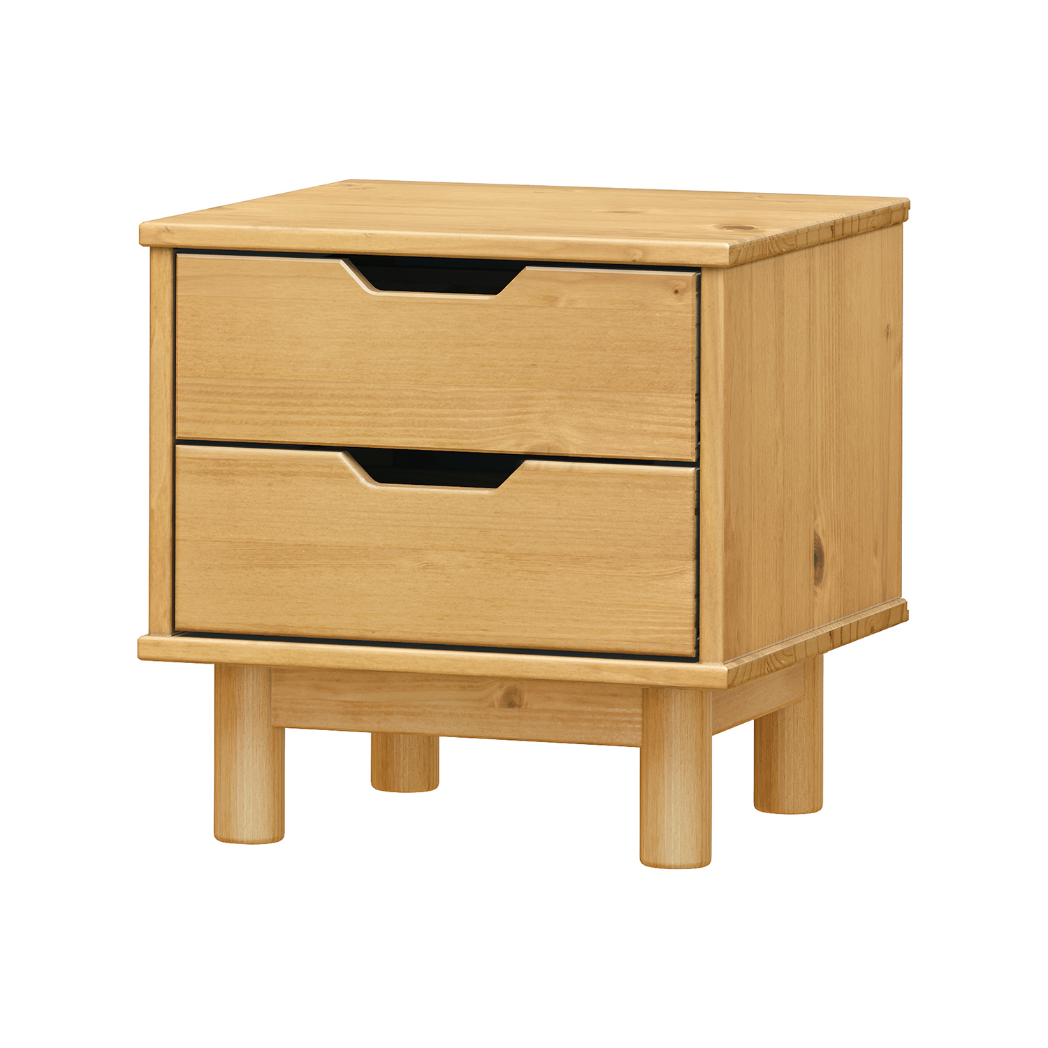 materiál masív borovica, lakované prevedenie 2 zásuvky s kovovými pojazdmi, 1 dvierka, 1 polica otvor na pretiahnutie káblov