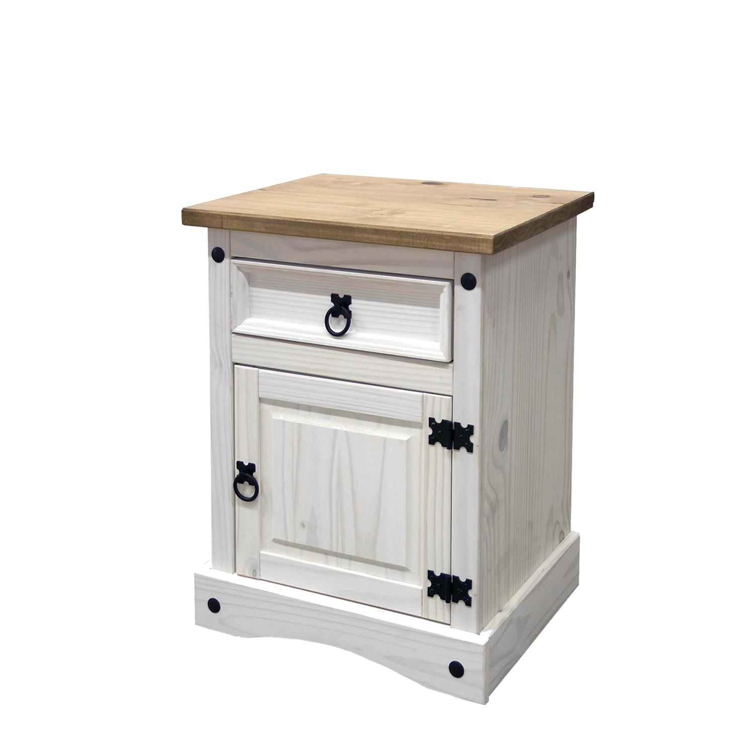 materiál masív borovica voskovaná v bielom odtieni horná doska masív borovica voskovaná v medovom odtieni 1 zásuvka, kovové ozdobné úchytky súčasť zos...