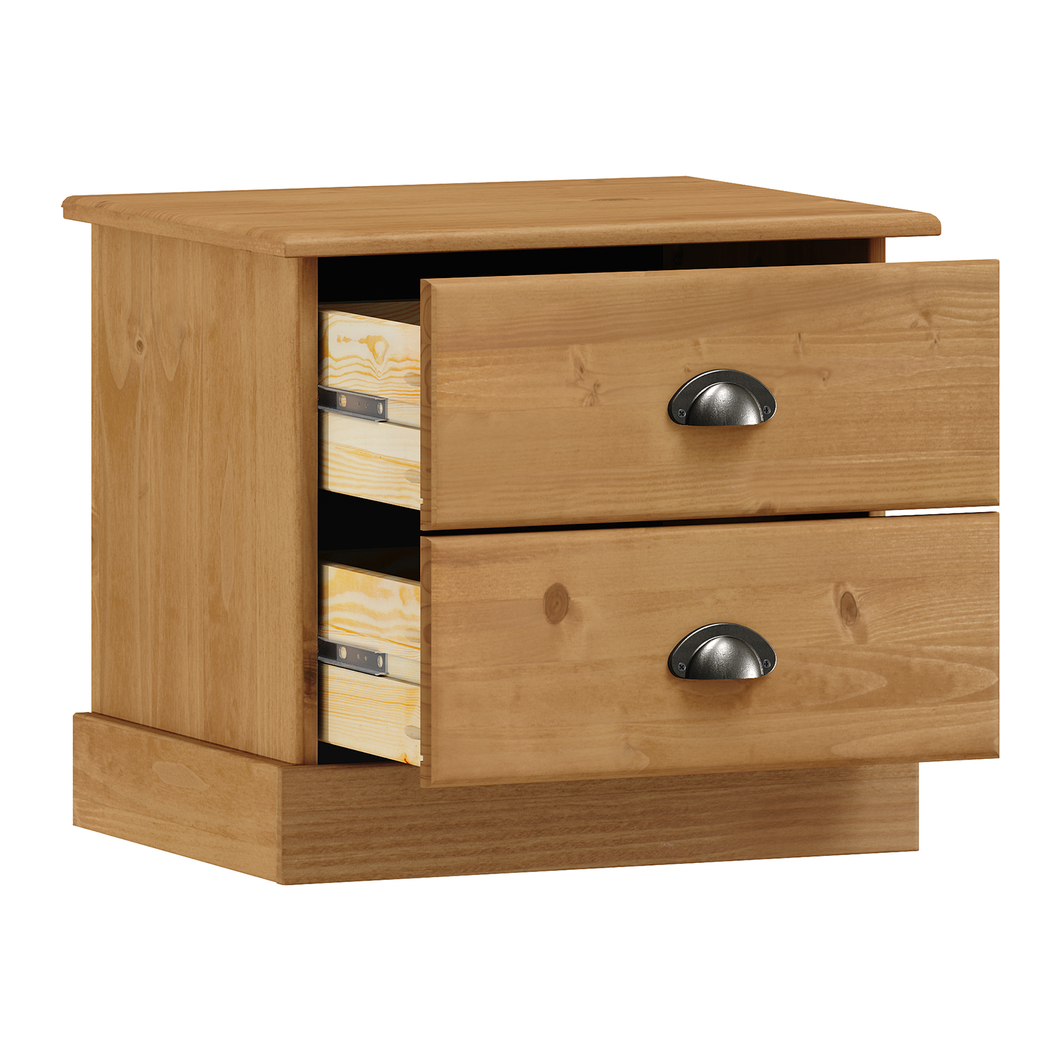 materiál masív borovica voskovaná v medovom odtieni 5 zásuviek s kovovými úchytkami a pojazdmi