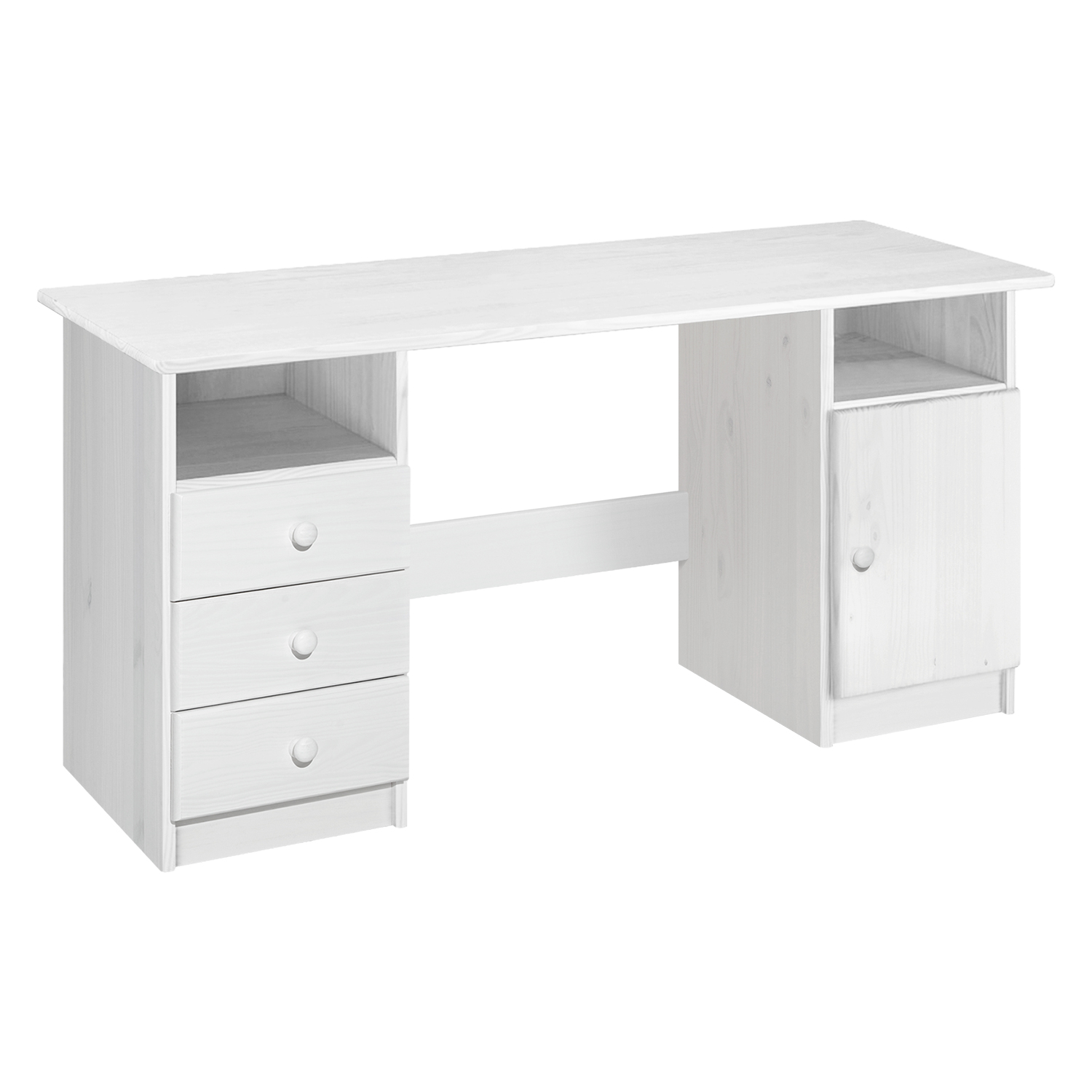 materiál masív borovica, farebné prevedenie biely lak 4 zásuvky s kovovými pojazdmi, 2 skrinky s dvierkami vybavené policou vhodný doplnok nadstavec 8...