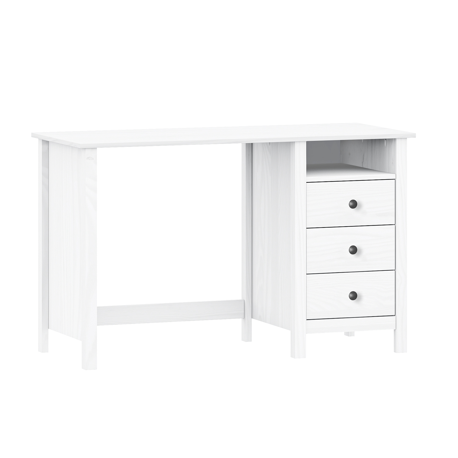 materiál masív borovica, farebné prevedenie biely lak kovové úchytky vo farebnom prevedení černená mosadz tri zásuvky s kovovými pojazdmi
