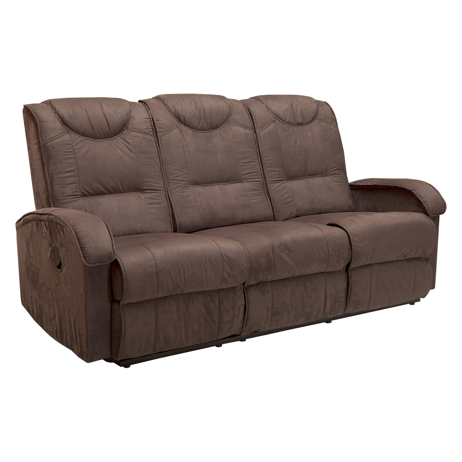 potah broušená kůže – imitace, barevné provedení hnědá oba krajní sedáky jsou polohovací, střední je pevný výška sedu 46 cm, výška opěradla 63 cm