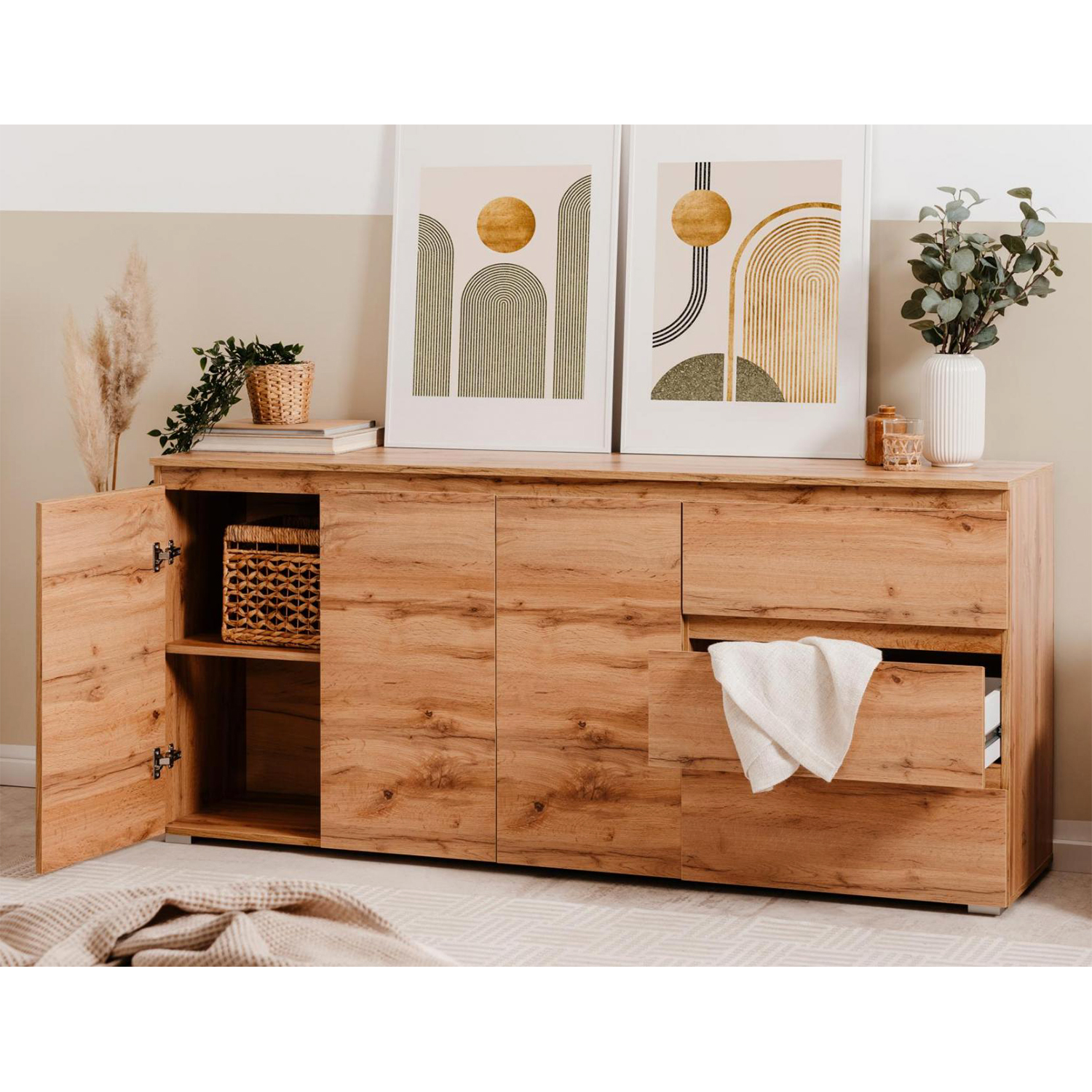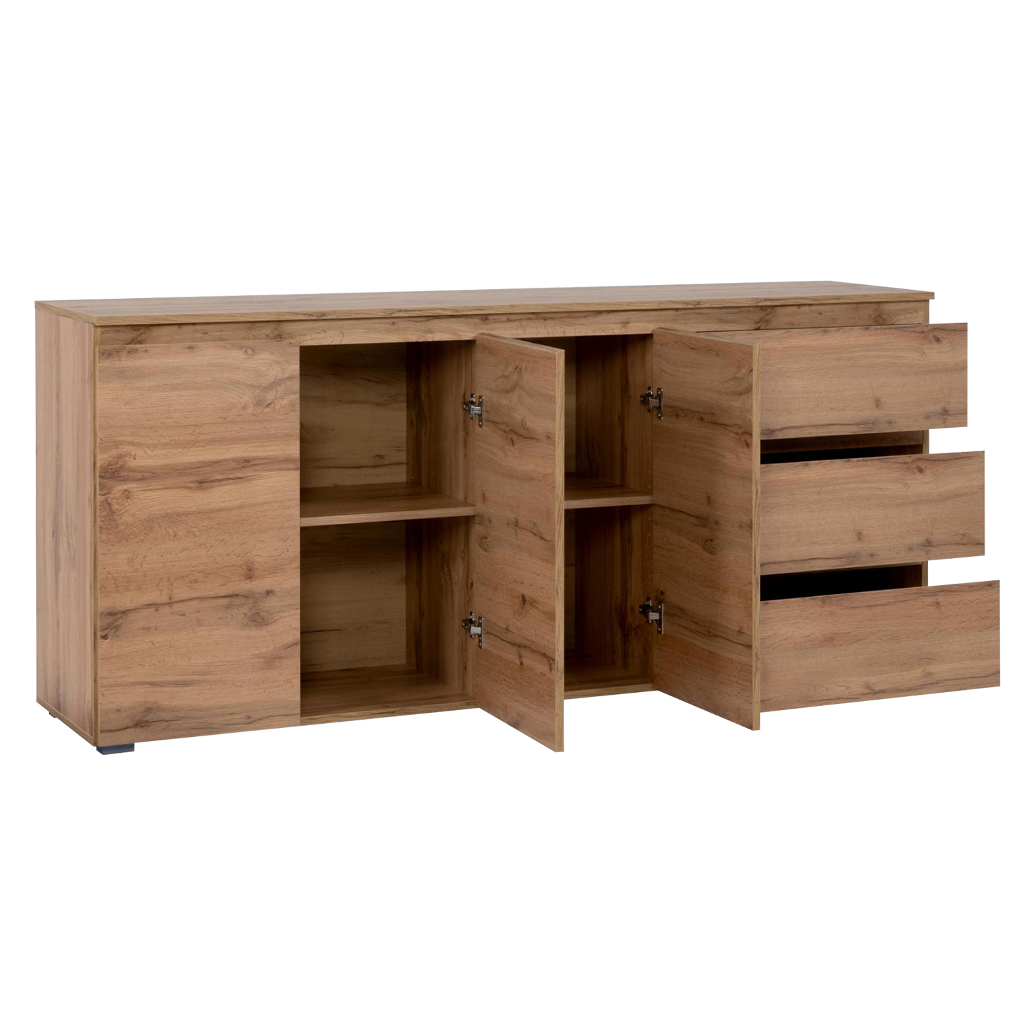 farebné prevedenie zlatý dub 3 dvere, 5 variabilných políc 4 zásuvky s kovovými pojazdmi