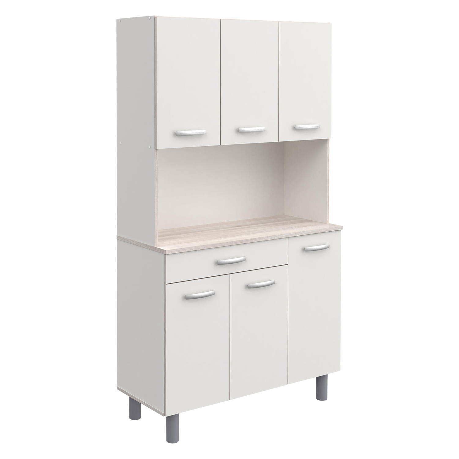 farebné prevedenie biela / akácia 1 veľká zásuvka s kovovými pojazdmi, 3 dvierka priestor nielen na mikrovlnnú rúru s nosnosťou max. 15 kg a rozmerom ...