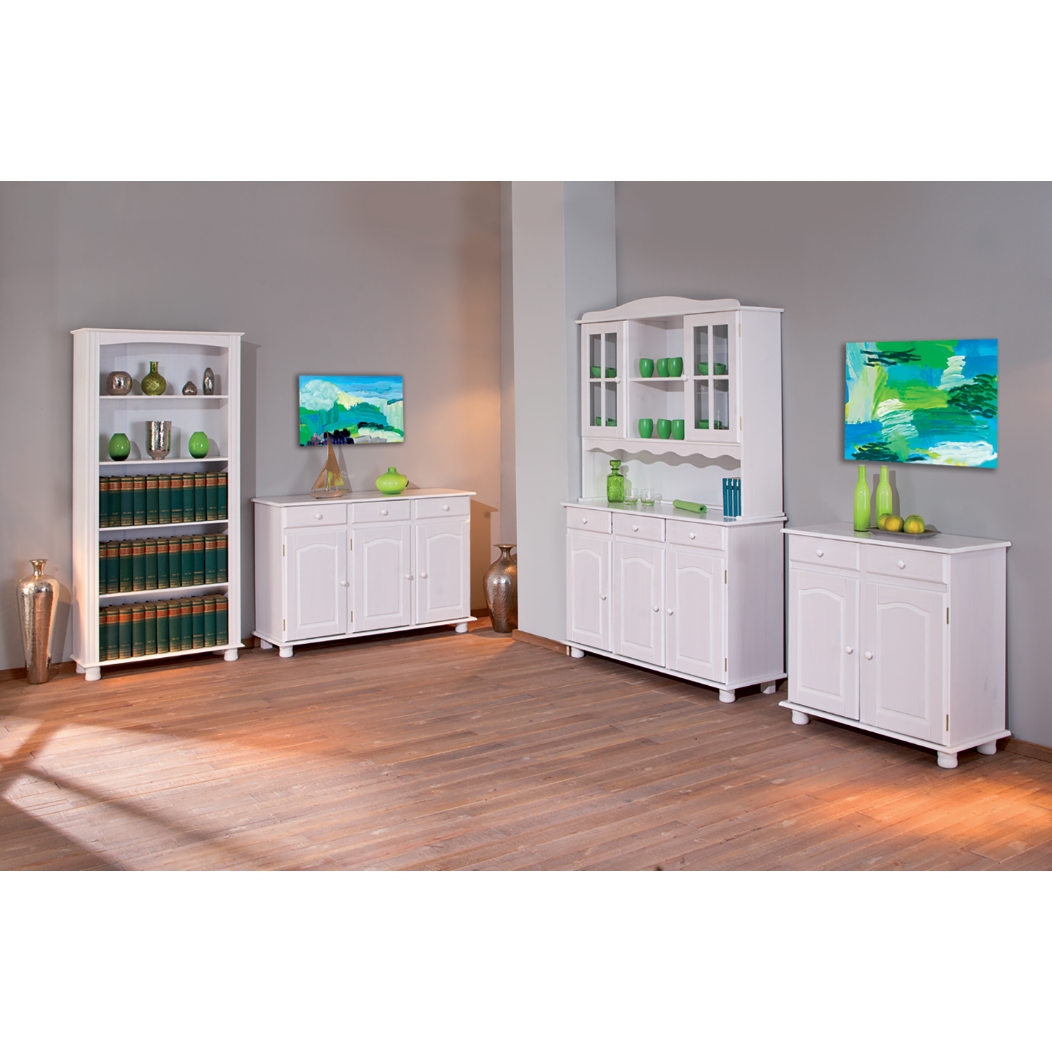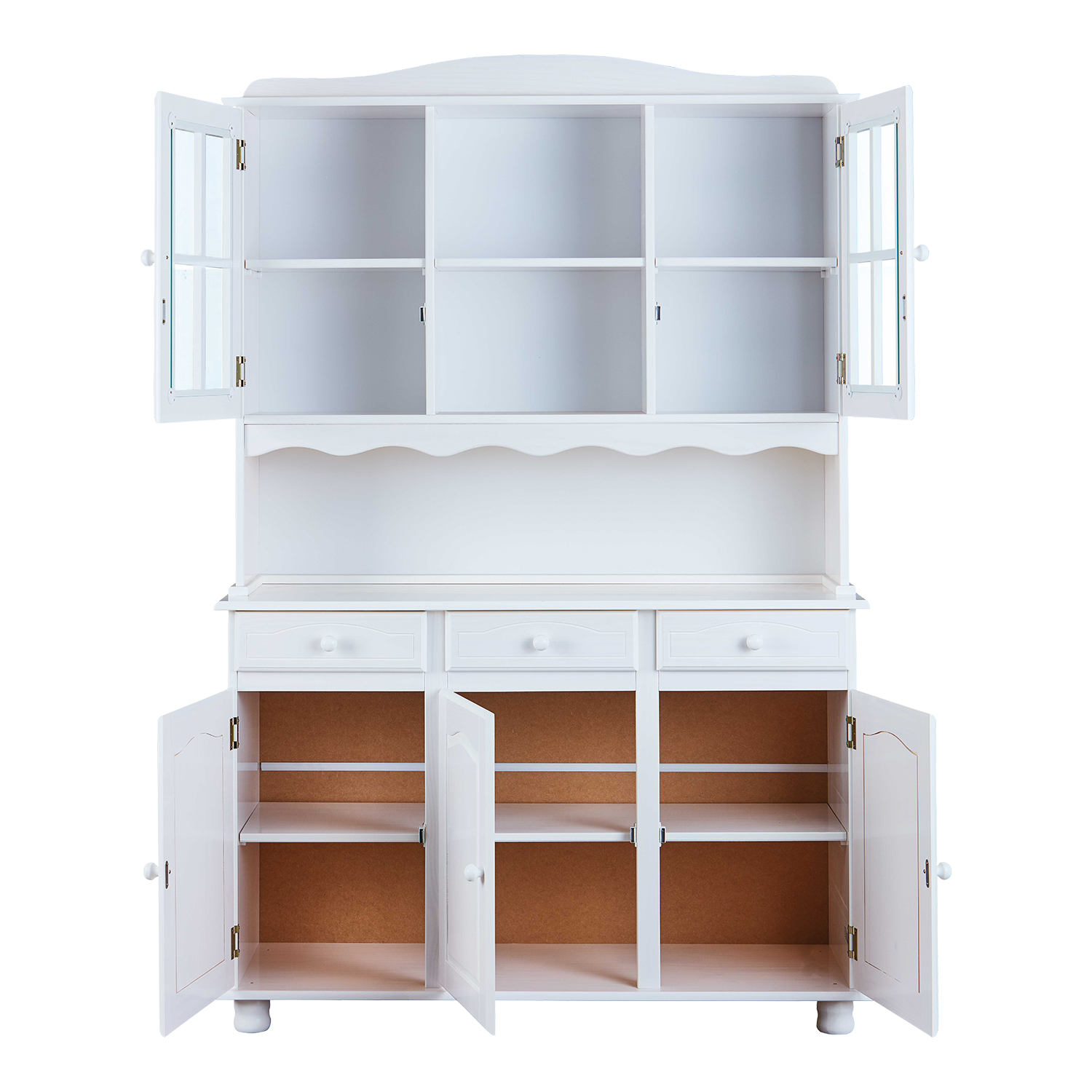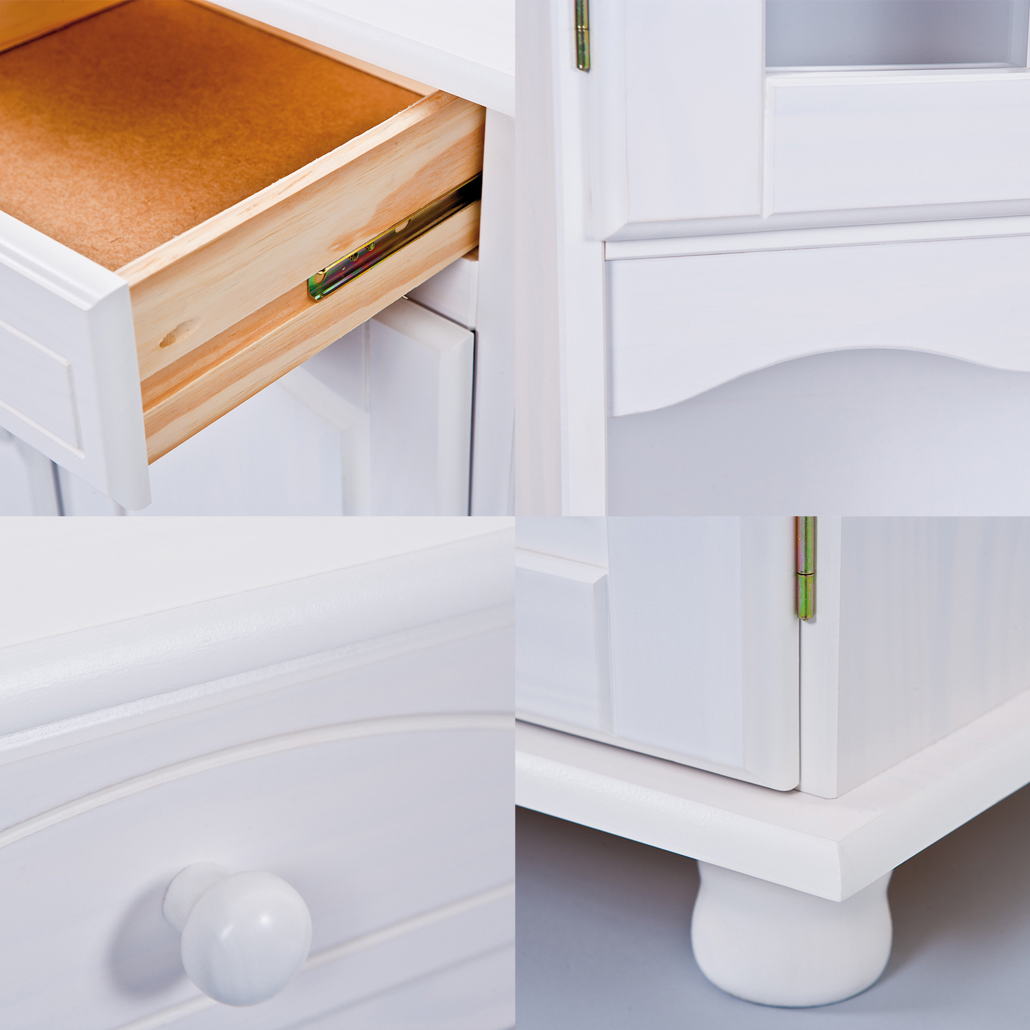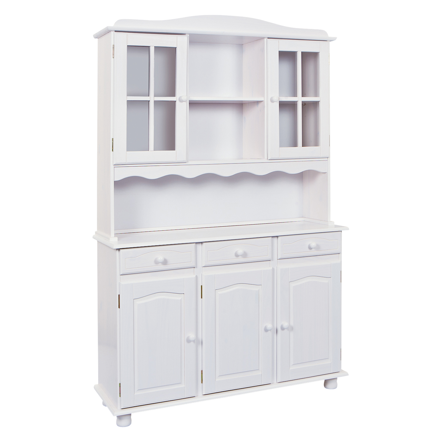 materiál masív borovica, farebné prevedenie biely lak v hornej časti 2 presklené dvierka, 2 police v spodnej časti 3 plné dvierka, 3 zásuvky s kovovými pojazdmi hĺbka hornej časti 32 cm zostava príborníka LIVIO ID20900810 a nadstavca LIVIO 8057B PAMINA, LOVI, ABACO, LIVIO, ALICANTE, VALENCIA, TOSCANA, SIENA