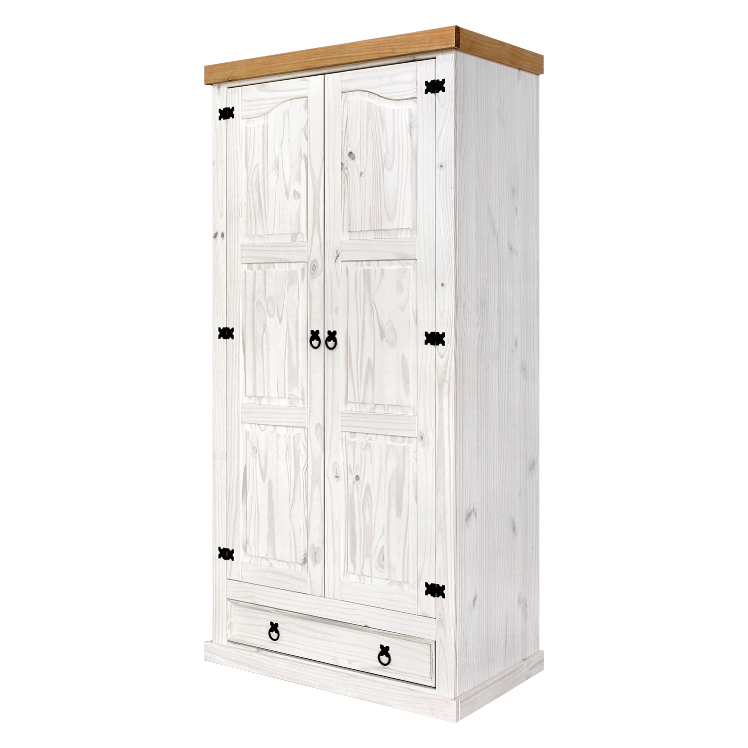 materiál masív borovica voskovaná v bielom odtieni horný lem masív borovica voskovaná v medovom odtieni šatníková skriňa so šatníkovou tyčou a policou...