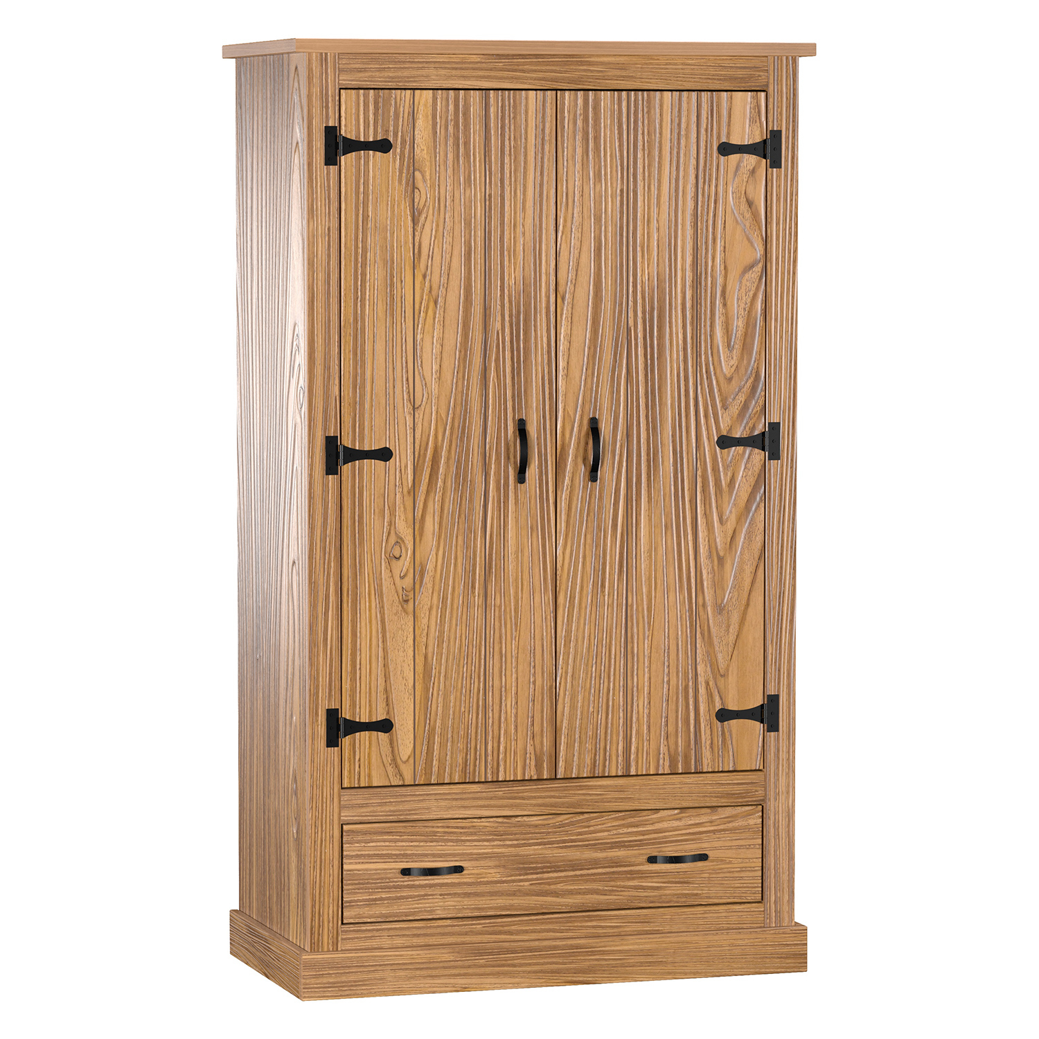 materiál masív borovica, farebné prevedenie dub antik lakované čírym lakom, vlis drevenej štruktúry 2 dvierka, 2 police, 3 zásuvky súčasť zostavy EL D...