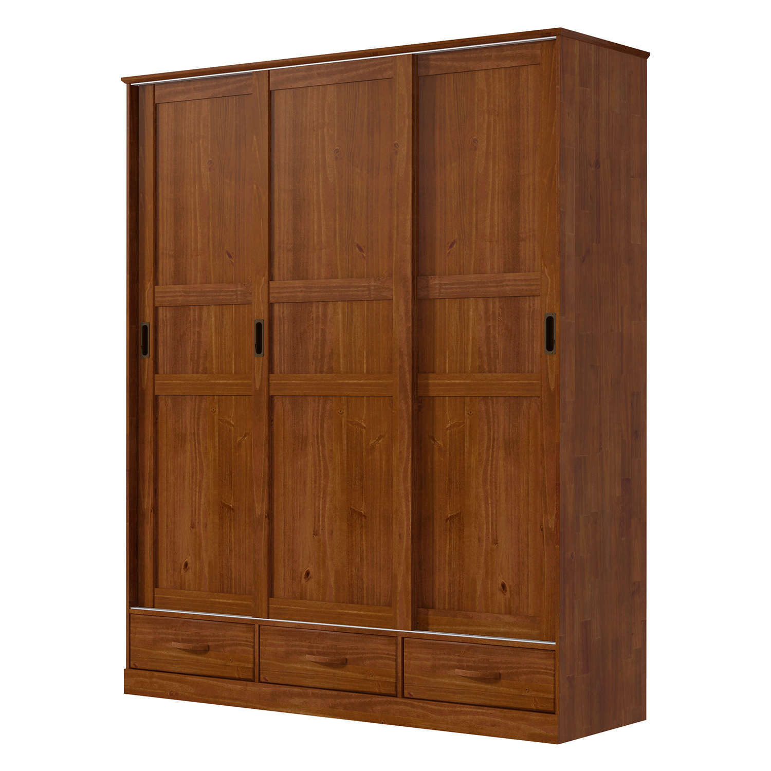 materiál masív borovica, lakované prevedenie 3 zásuvky s kovovými pojazdmi, 3 posuvné dvere v strednej časti 4 police, v ľavej a pravej časti vždy 1 p...