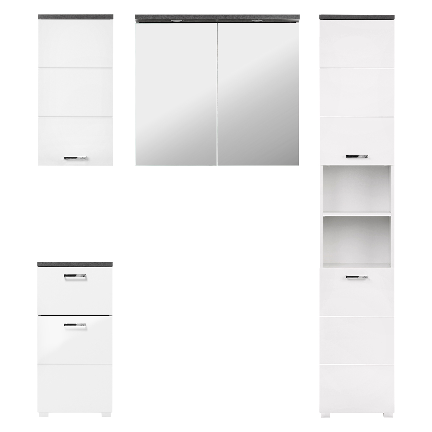 farebné prevedenie biela / imitácia tmavého betónu 2 dvierka so zrkadlami, 2 police v hornej časti skrinky 2 svetlá, vo vnútri skrinky el. zásuvka vho...