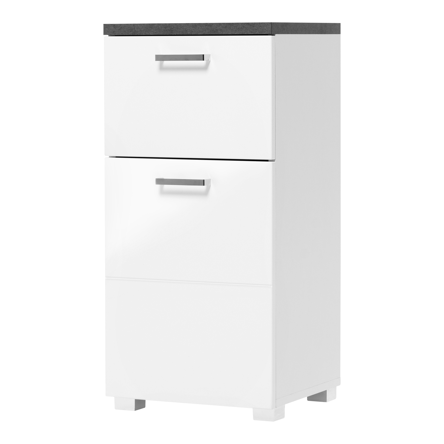 farebné prevedenie biela / imitácia tmavého betónu 1 dvierka, 1 polica, 1 zásuvka s kovovými pojazdmi vhodný doplnok ku skrinkám PRAYA FN2766, FN2767, FN2768 a FN2800 všetkých päť produktov možno tiež zakúpiť ako zostavu FN27650
