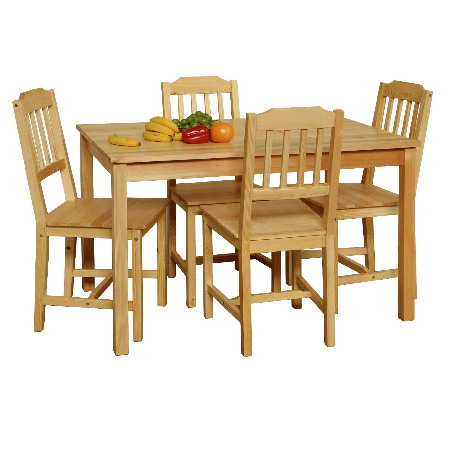 jedálenský stôl 7842 a 4 jedálenské stoličky 769 stôl aj stolička materiál masív borovica, nelakované prevedenie výška sedu stoličky 45 cm rozmer stol...