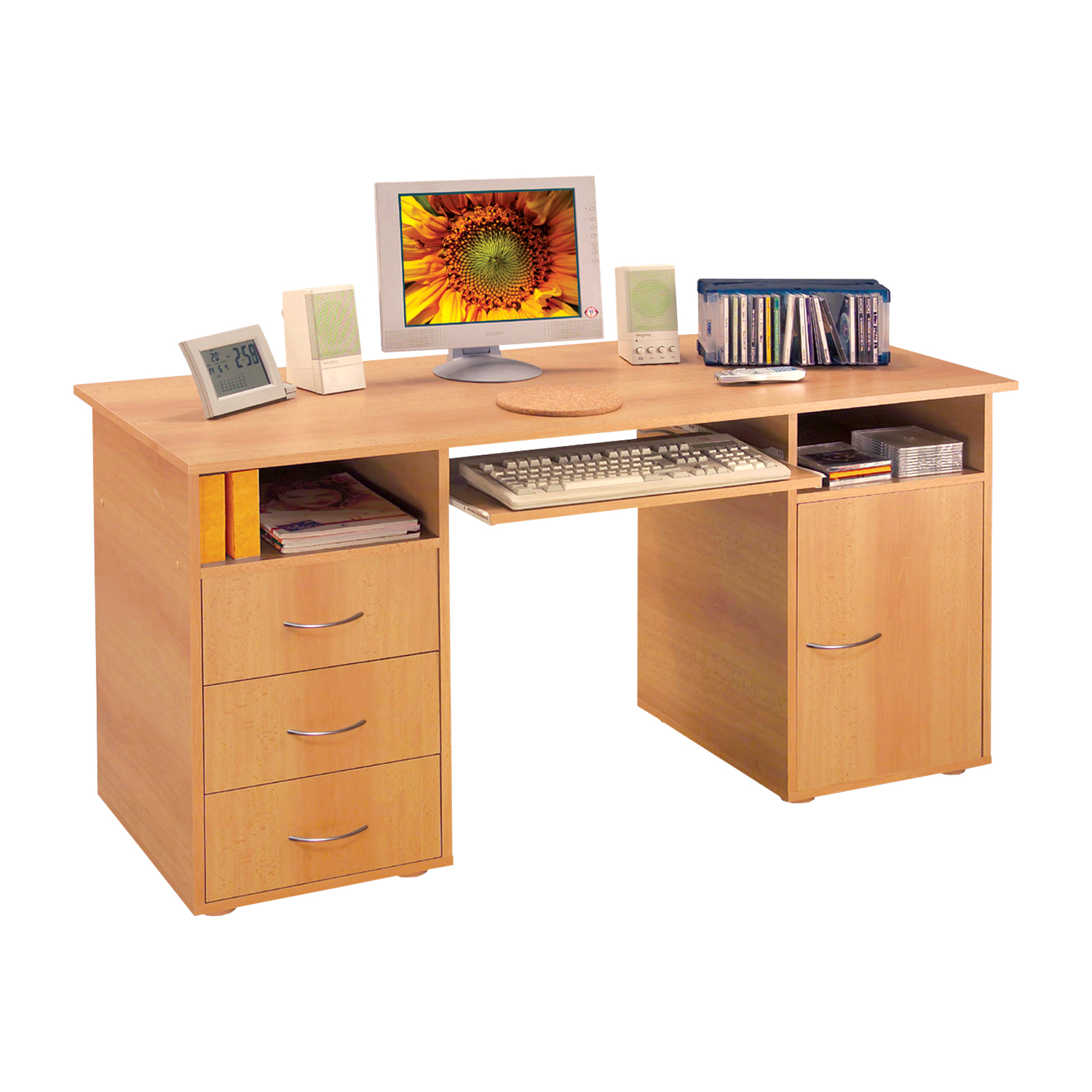 farebné prevedenie dub Sonoma 3 zásuvky, skrinka s dvierkami a variabilnou policouvýsuv pre klávesnicu je súčasťou dodávky (montáž voliteľná)