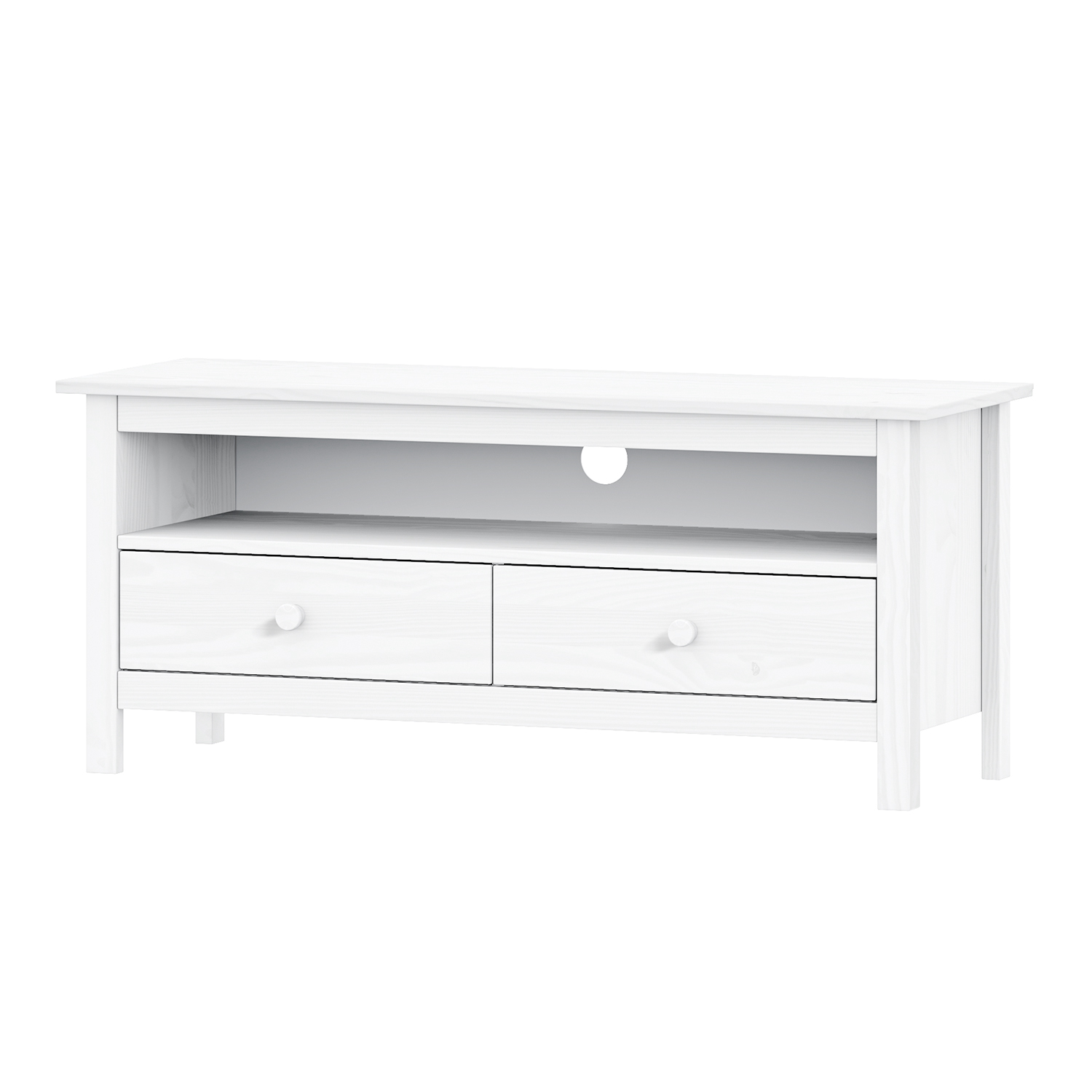 materiál masív borovica, farebné prevedenie biely lak 2 zásuvky s kovovými pojazdmi, 2 plné dvere, 1 polica vhodný doplnok nadstavec 8096B