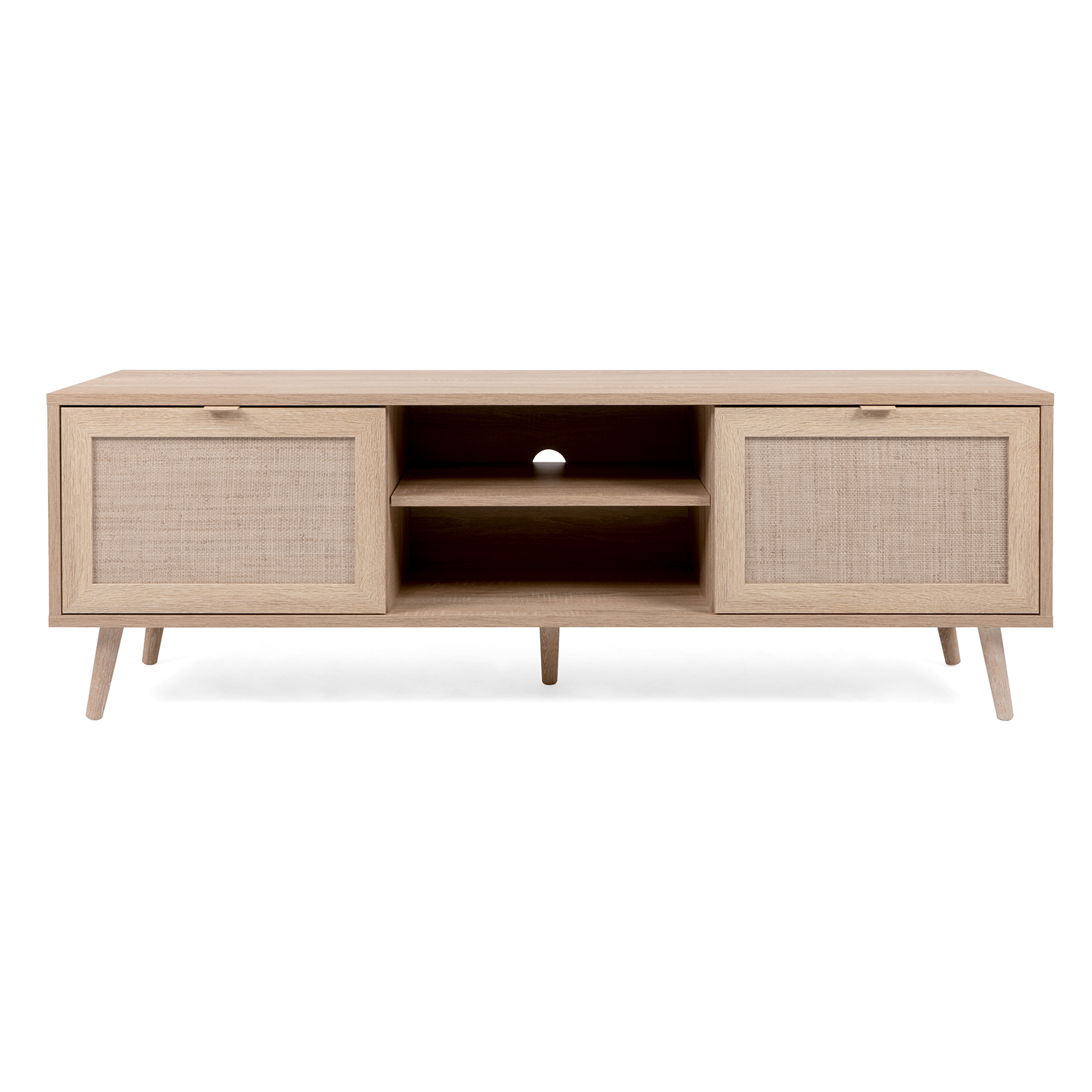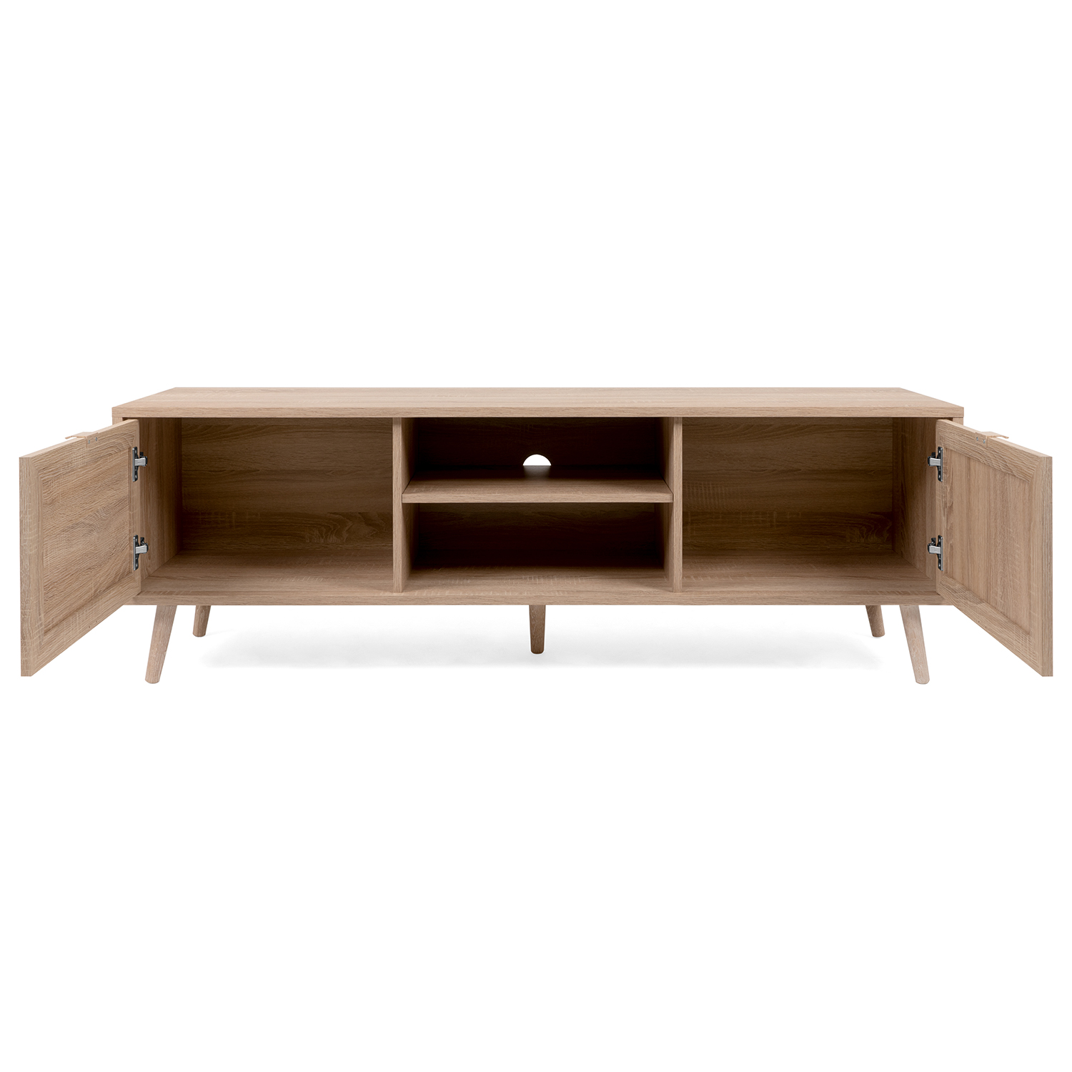 farebné prevedenie dub Sonoma dvere imitácia lykového výpletu, nohy masív 1 otvorená polica, malé a veľké dvierka v pravej časti 1 variabilná polica