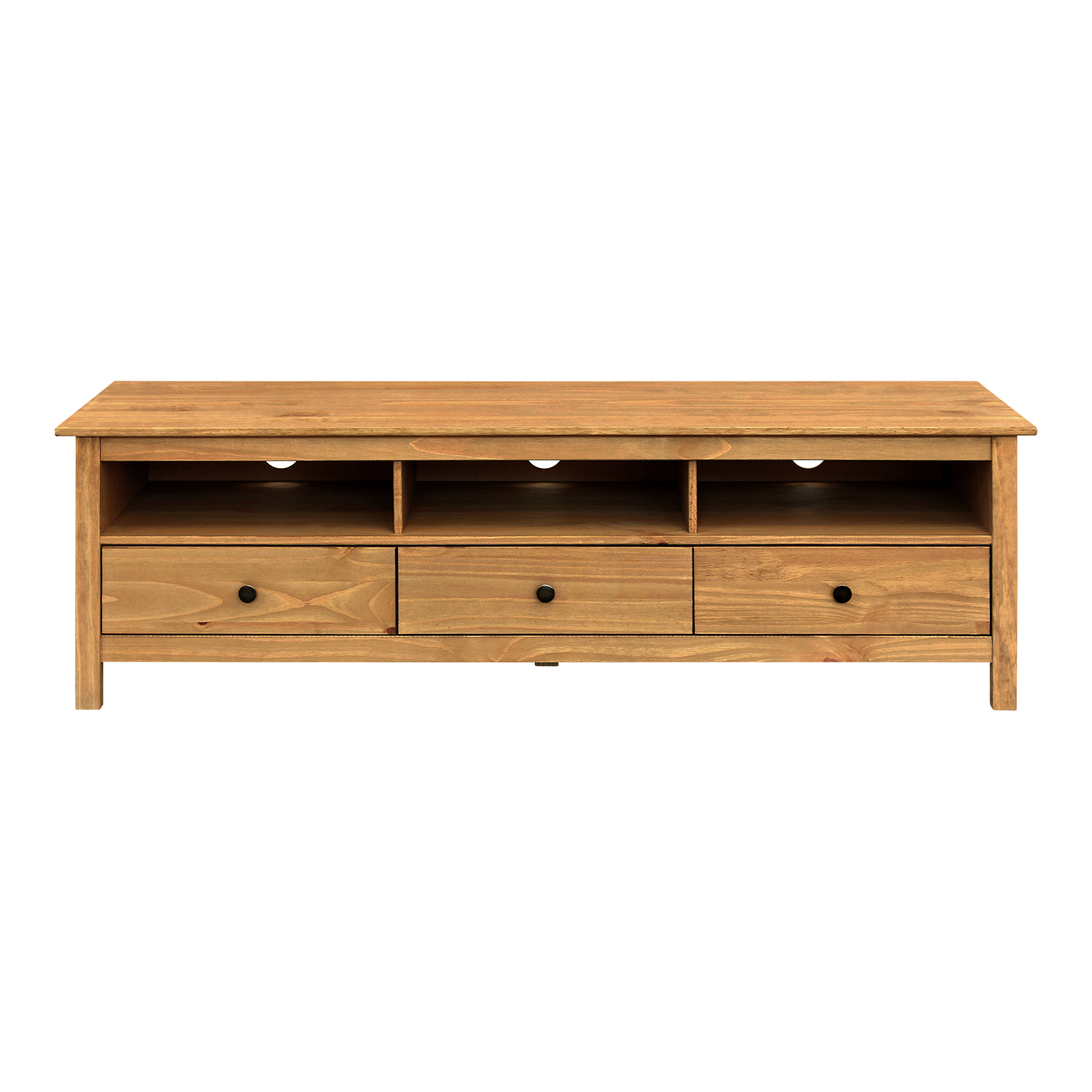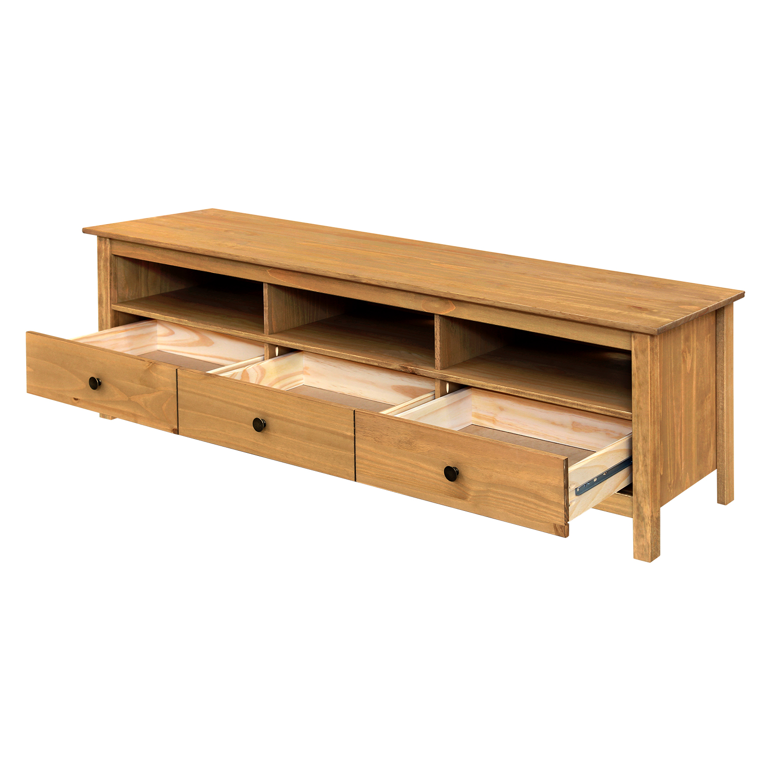 materiál masív borovica voskovaná v medovom odtieni kovové úchytky vo farebnom prevedení čiernená mosadz 2 otvorené police, 1 dvierka a 3 zásuvky s ko...
