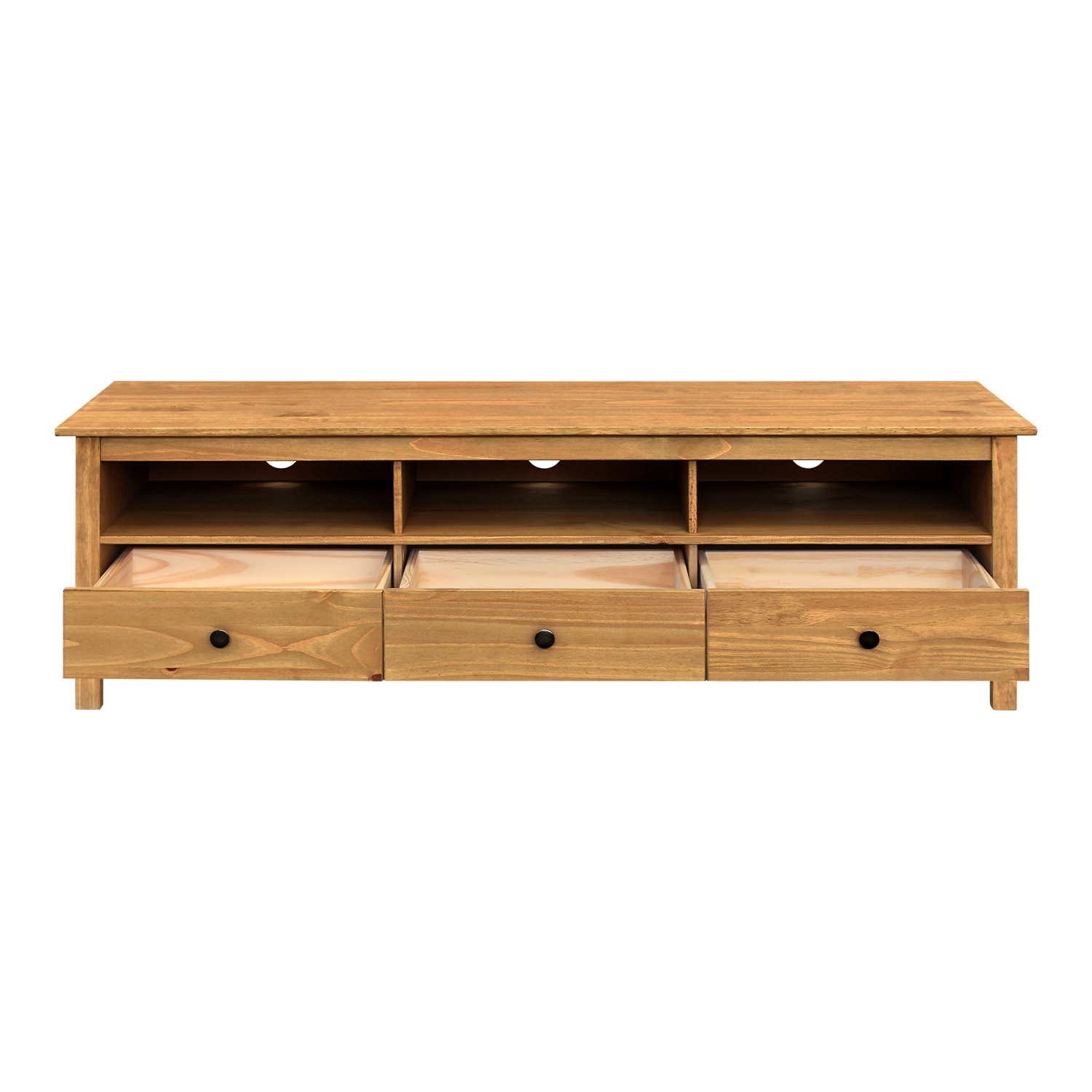 materiál masív borovica voskovaná v medovom odtieni kovové úchytky vo farebnom prevedení černená mosadz 3 zásuvky s kovovými pojazdmi, 1 polica