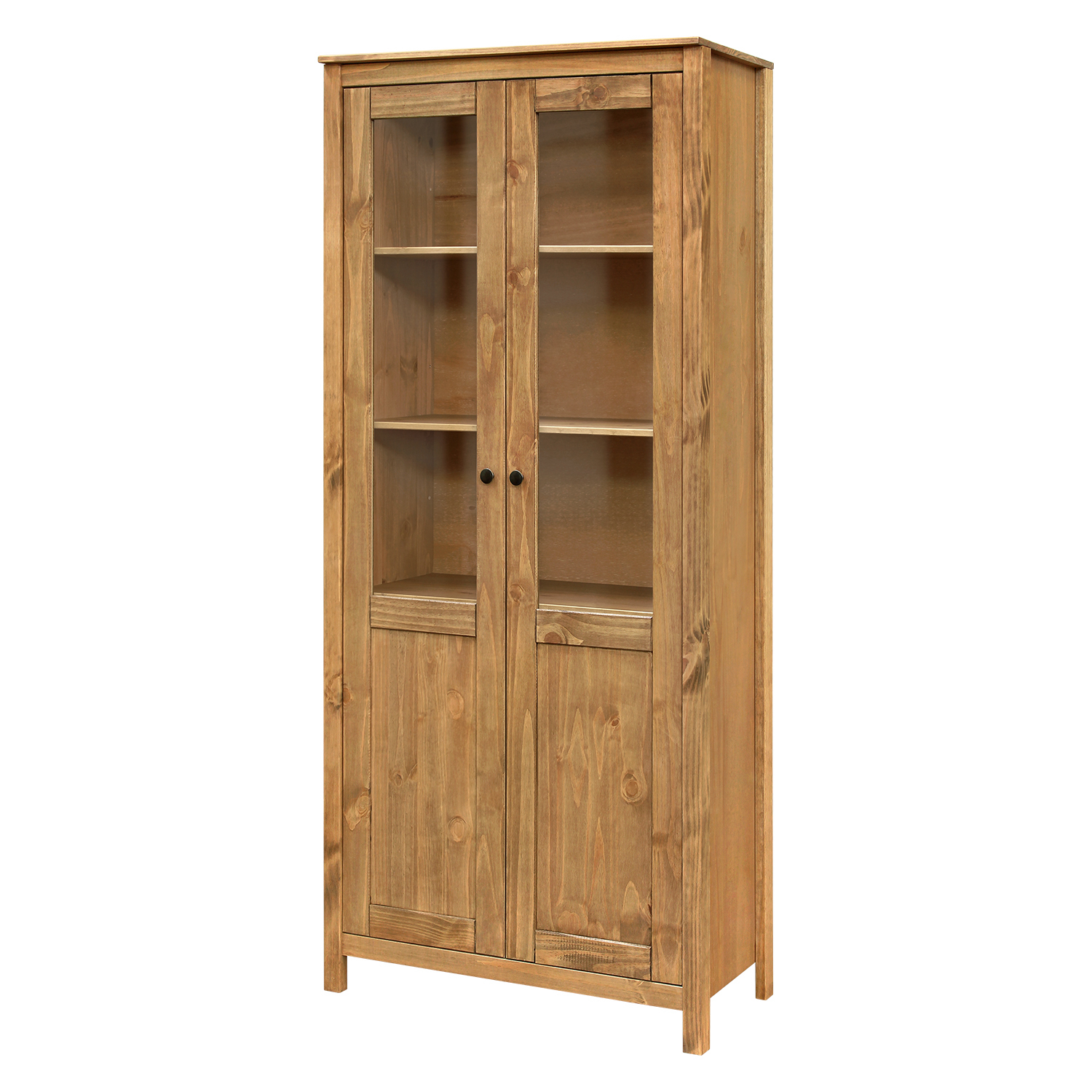 materiál masív borovica voskovaná v medovom odtieni kovové úchytky vo farebnom prevedení černená mosadz 2 presklené dvere, 2 police maximálne nosnosti...