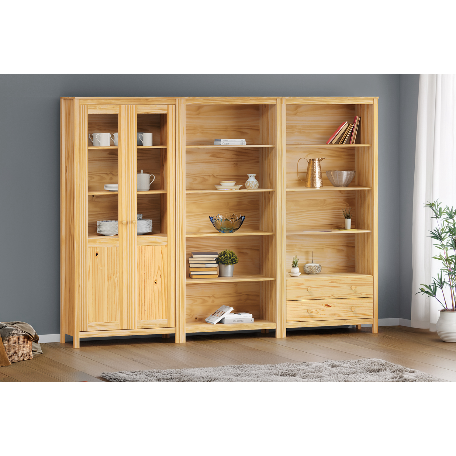materiál masiv borovice, lakované provedení 2 otevřené police, 1 dvířka a 3 zásuvky s kovovými pojezdy výsuv není součástí dodávky ke s...